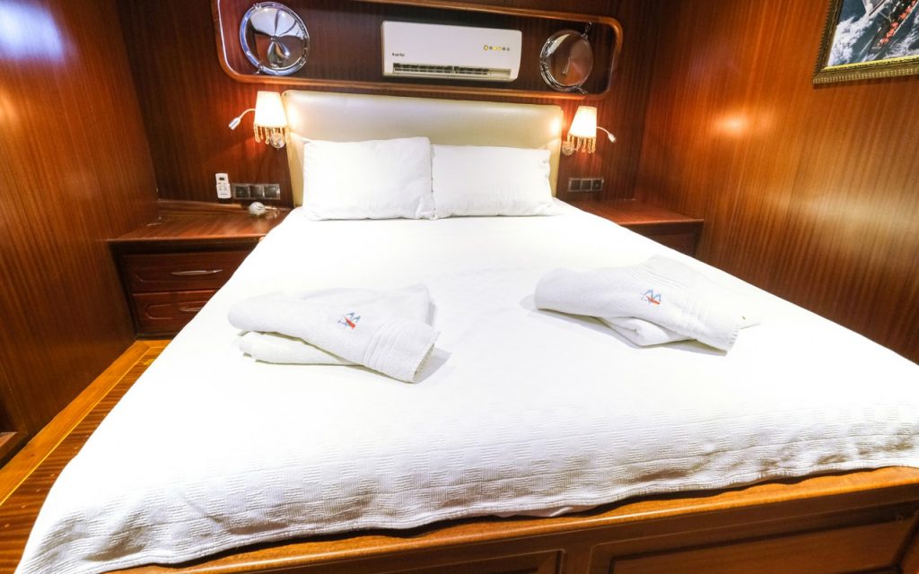 Bed linen, towels, beach towels and their laundry, cleaning of gulet.