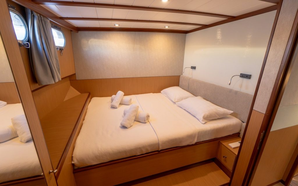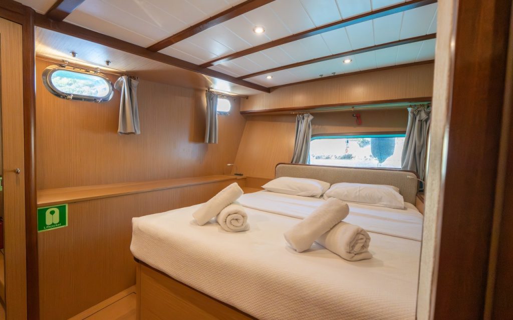 Bed linen, towels, beach towels and their laundry, cleaning of gulet.
