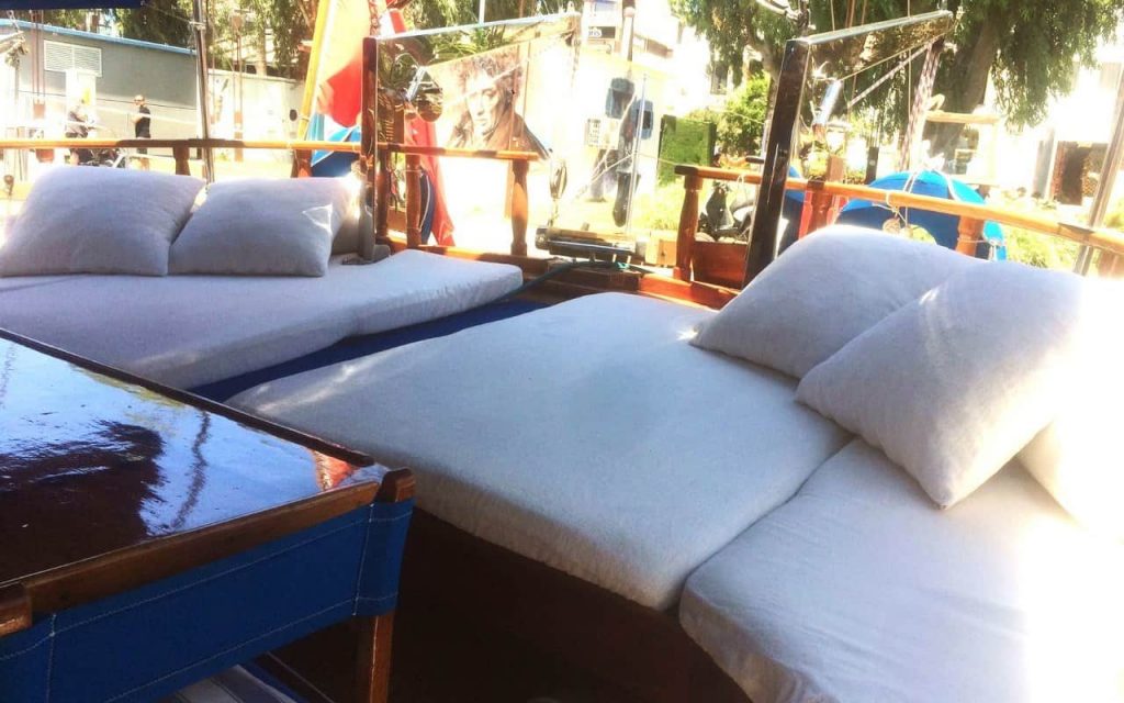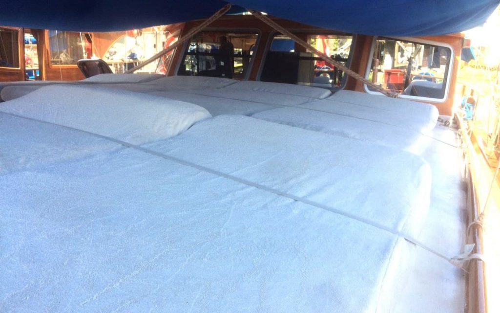 Bed linen, towels, beach towels and their laundry, cleaning of gulet.